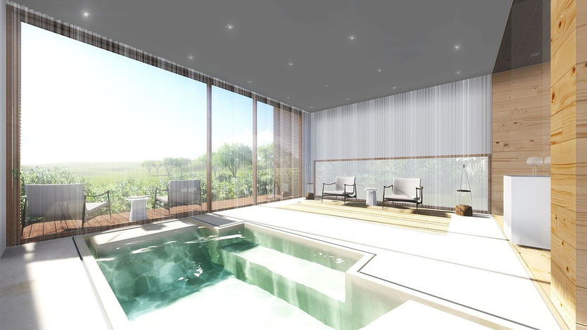 Um pátio central configura-se a partir da disposição dos blocos de uso intimo e de serviços no térreo e de um bloco de hóspedes localizado no pavimento superior, permitindo uma relação mais introspectiva dos usuários da casa com esse espaço, garantindo a privacidade, mas permitindo que o restante da casa se abra para o ambiente externo, valorizando assim a paisagem presente no entorno. A linguagem adotada busca a horizontalidade e a leveza, ao mesmo tempo em que almeja uma imagem de imponência e contemporaneidade para a edificação.